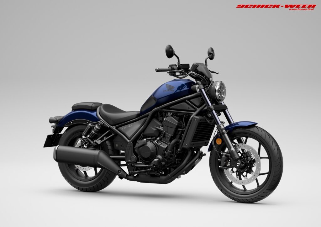 Honda Rebel CMX1100 DCT in blau, Honda Hornet 1000 in rot und silber, Honda X-ADV 750 in grau und gelb, Honda CBR600RR in rot, CRF300 Rally in rot, DAX 125 in blau, Monkey 125 in rot.