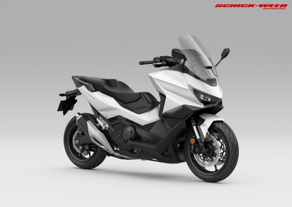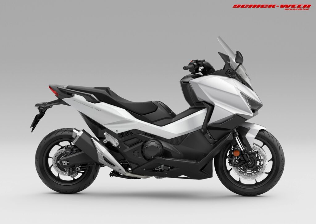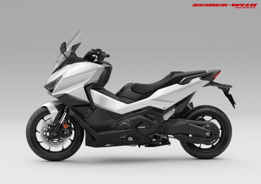 Der Forza 750 steht an der Spitze der erfolgreichen Forza Reihe. Der Big-Bore Scooter bietet ein außergewöhnliches Fahrerlebnis, luxuriösen Komfort, moderne Technik und einen stylischen Look. Im Modelljahr 2025 erhielt der Scooter ein dynamisches Styling Update und eine umfangreichere Ausstattung – mit LED-Doppelscheinwerfern inklusive Tagfahrlicht und Blinkern, sowie einem serienmäßigen Tempomat und ein upgedatetes TFT Display mit Honda RoadSync Konnektivität. Der Forza 750 verfügt über einen drehmomentstarken 745 cm3 Zweizylinder-Motor mit Throttle By Wire, 3 wählbaren Fahrmodi sowie über die dreistufige Honda Selectable Torque Control (HSTC). Im Modelljahr 2025 kam ein überarbeiteter RAIN-Modus hinzu. Der Stahlrohrrahmen mit Aluminiumschwinge und Pro-Link-Hinterradaufhängung und ein 17-Zoll Vorderrad in Kombination mit einem 15-Zoll Hinterrad bieten ein sicheres Handling. Die radial montierten Vierkolben-Bremssättel liefern eine äußerst gute Bremsleistung. Der Stauraum unter dem Sitz bietet Platz für einen Integralhelm und beherbergt einen USB-C-Ladeanschluss. Zudem gibt es die Möglichkeit, den Forza 750 für Besitzer der Führerscheinklasse A2 auf 48PS (35kW) zu drosseln. Eine neue Farboption wertet die Optik des Forza 750 zum Modelljahrgang 2026 auf und unterstützt die Begehrlichkeit.