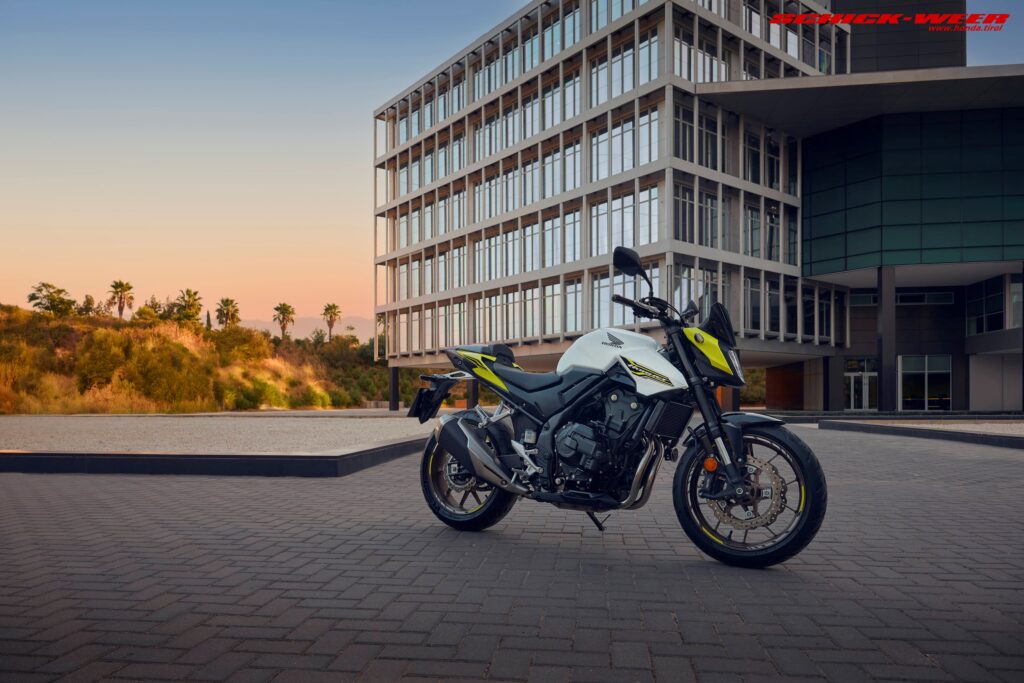 Modellaktualisierungen: Hondas A2-Naked-Bike CB500 Hornet mit Zweizylindermotor wird für das Modelljahr 2026 in die Honda E-Clutch-Familie aufgenommen. Die bahnbrechende Technologie eröffnet einer Reihe neuer Fahrer den Streetstyle, mehr Dynamik und den legendären Namen Hornet. Die Honda E-Clutch, die erstmals als Option für die CB500 Hornet erhältlich ist, ermöglicht es dem Fahrer, ohne Kupplungshebel zu starten, zu stoppen und zu schalten – nur mit dem Schaltpedal, wodurch die A2-konforme Leistung und das Drehmoment des 471-ccm-Motors mit 48 PS (35 kW) und 43 Nm optimal genutzt werden können. Die hochwertige Fahrwerksausstattung umfasst eine 41-mm-Showa-SFF-BP-USD-Gabel, einen Showa-Stoßdämpfer, Doppelscheibenbremsen vorne mit Vierkolben-Bremssätteln und die Honda Selectable Torque Control. Das aggressive Design umfasst einen LED-Scheinwerfer, während ein 5-Zoll-TFT-Bildschirm Honda RoadSync-Smartphone-Konnektivität bietet, die über einen einfach zu bedienenden, hintergrundbeleuchteten 4-Wege-Kippschalter bedient wird.