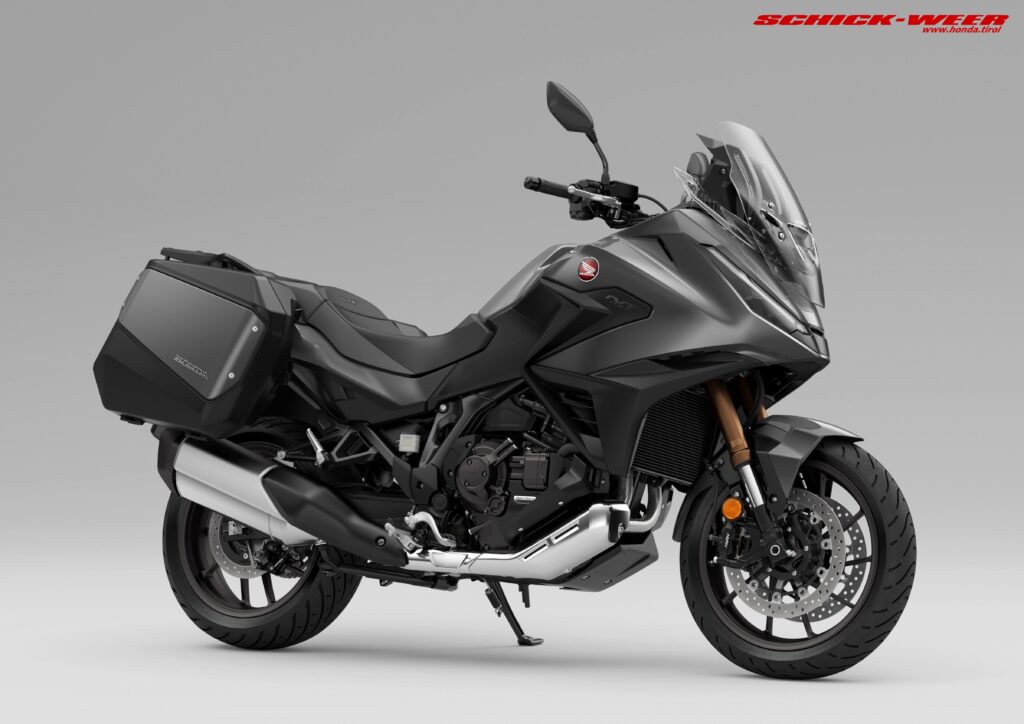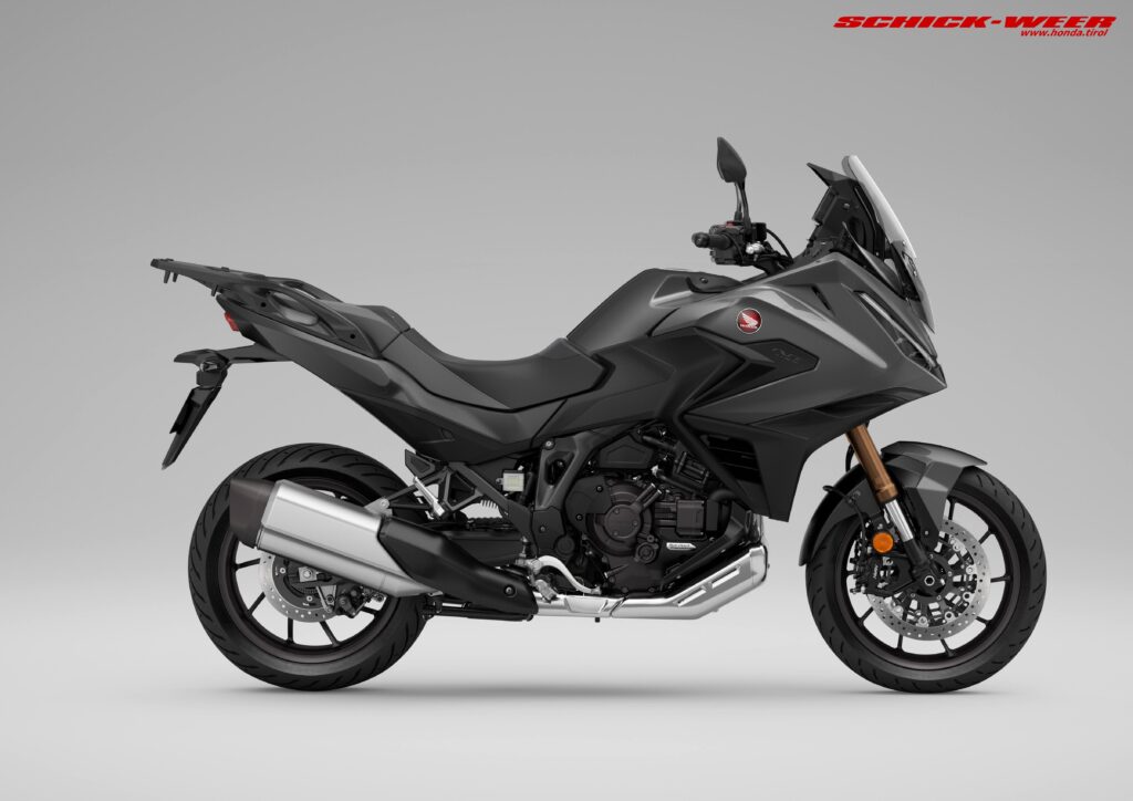 Den Zweizylindermotor wertet eine Leistungssteigerung im mittleren Drehzahlbereich auf und eine sechsachsige Inertial Measurement Unit sorgt für eine zusätzliche Präzision der elektronischen Assistenzsysteme. Im Modelljahr 2025 gabes auch die neue Variante NT1100 Electronic Suspension DCT, die mit den elektronisch gesteuerten Showa EERATM-Federelementen sowie Doppelkupplungsgetriebe ausgestattet war. Überarbeitet wurde auch das Design der Verkleidung. Der höhenverstellbare Windschild lässt sich nun mit einer Hand bedienen, während obere und untere Windabweiser modifiziert wurden, um eine höhere aerodynamische Effizienz bei hohen Geschwindigkeiten zu bieten und den hervorragenden Wetterschutz zu unterstützen. Der Doppel-LED-Scheinwerfer verfügt jetzt über DRL-Tagfahrlicht für mehr Sicht und Sicherheit. Der vordere Kotflügel wurde im hinteren Bereich für optimierten Spritzwasserschutz verlängert, die überarbeitete Sitzbank bietet mehr Komfort und die serienmäßigen Packtaschen bieten ein vergrößertes Innenvolumen. Drei elektronische Fahrprogramme (Urban, Tour, Rain) und zwei User-Modi unterstützen ein sicheres Fahrvergnügen, sowie auch die dreifach einstellbare Traktionskontrolle mit integrierter Wheelie-Control. Neu im Modelljahr 2025 war ein Kurven-ABS. Die Vorderrad-Doppelscheibenbremsen sind mit Radial-Vierkolbenzangen ausgestattet. Ein 6,5 Zoll TFT-Touchscreen mit Apple CarPlay® und Android Auto® rundet das Premium-Paket ab.